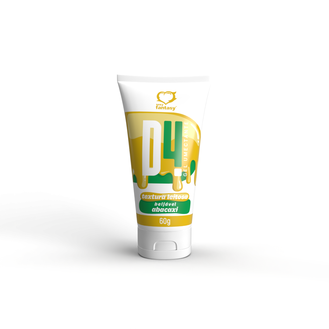 D4 com Textura Leitosa é um gel umectante com cor e textura que imitam o real. Ideal para quem curte e quer inovar na relação. Além da lubrificação extra, é beijável para você se deliciar com o sabor do Abacaxi.