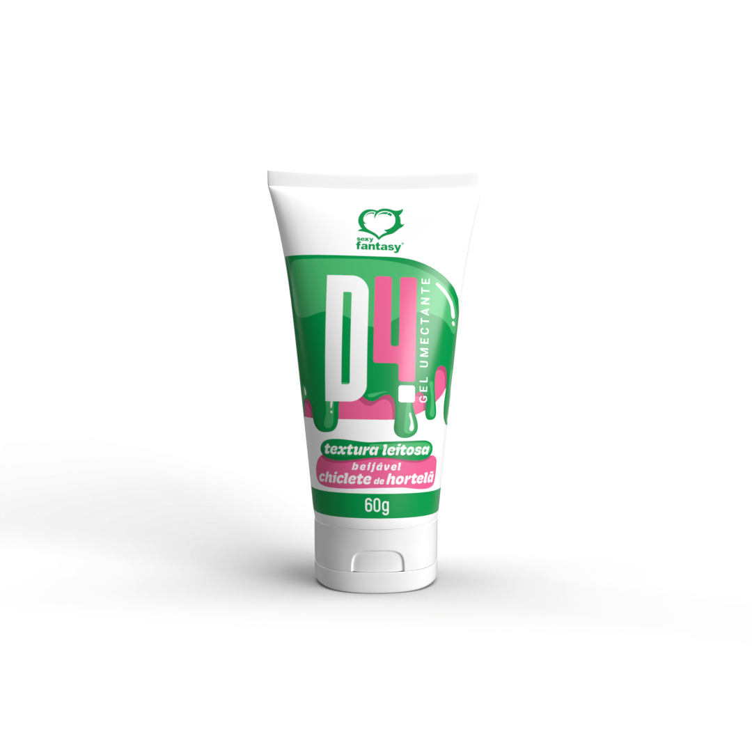 D4 com Textura Leitosa é um gel umectante com cor e textura que imitam o real. Ideal para quem curte e quer inovar na relação. Além da lubrificação extra, é beijável para você se deliciar com o sabor do Chiclete com Hortelã.
