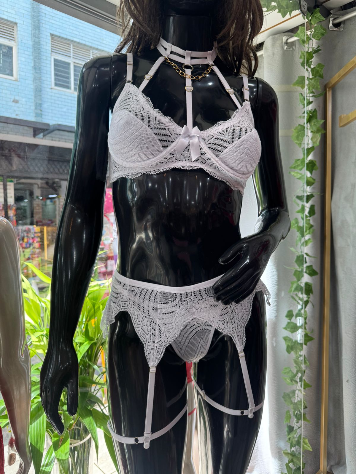 MARISA CONJUNTO EM RENDA COM ARO CINTA LIGA E CORRENTES - BRANCO