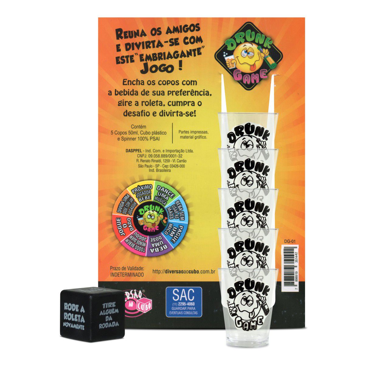 O Drunk Game Embriagante é um jogo ideal para quem quer aproveitar e se divertir muito com os amigos. Vem com seis copinhos de shot, uma roleta e um dado para jogar.