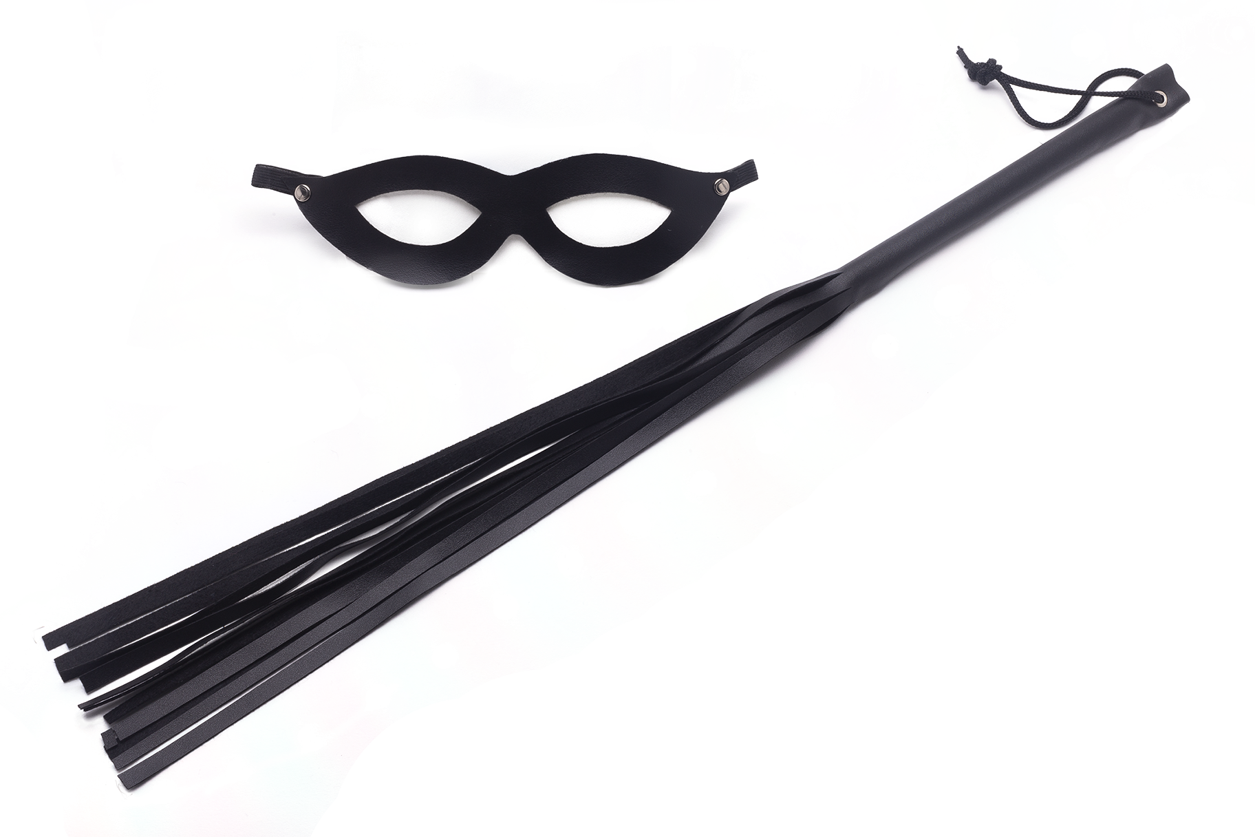 Contém: 01 máscara com elástico ajustável e 01 chicote em couro sintético.